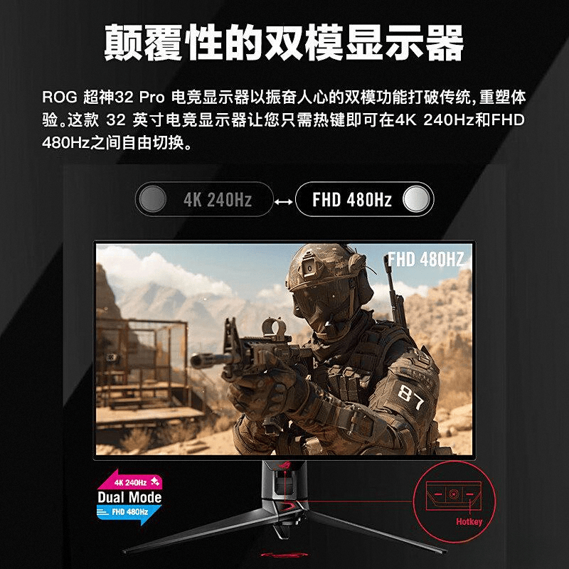 值得一提的是ღ★ღ,华硕PG32UCDP还支持双模显示ღ★ღ,即4K 240Hz和1K 480Hz两种模式ღ★ღ,玩家可以根据实际需求自由切换ღ★ღ,满足不同场景下的使用需求ღ★ღ。同时ღ★ღ,HDR400的高动态范围显示技术ღ★ღ,让画面色彩更加生动逼真ღ★ღ,明暗细节层次分明ღ★ღ,带来沉浸式的视觉享受ღ★ღ。